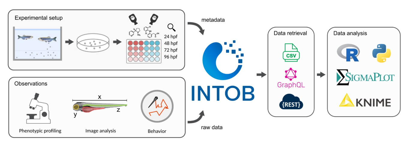 Researchers conducted over 600 zebrafish embryo toxicity tests, collecting extensive phenotypic observations and associated metadata. This information was systematically entered into the INTOB system via its web-based user interface, ensuring consistent data capture and adherence to standardized terminology.